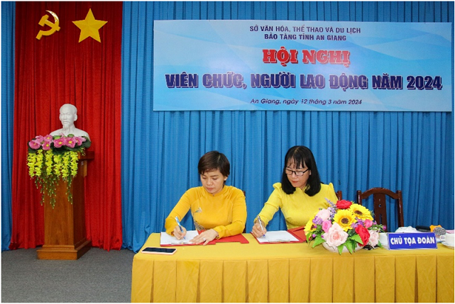 Thực hiện Quy chế dân chủ của Bảo tàng và hướng dẫn của Công đoàn viên chức tỉnh An Giang, chiều ngày 12/3/2024, Ban Giám đốc phối hợp Ban Chấp hành Công đoàn Cơ sở Bảo tàng tỉnh tổ chức Hội nghị Viên chức, Người lao động năm 2024.