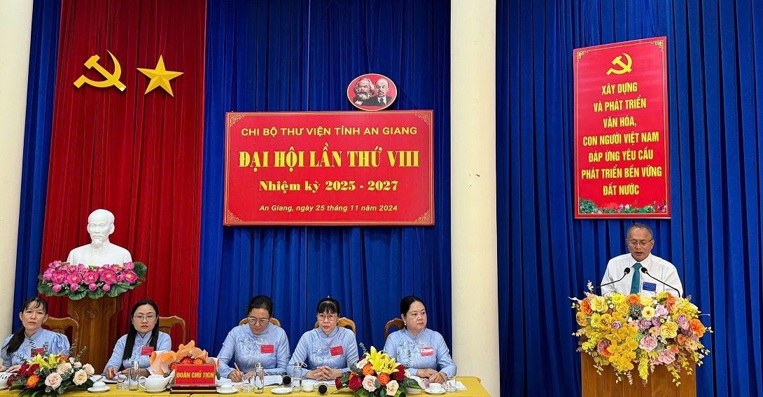 Chiều ngày 25/11/2024, tại Hội trường Sở Văn hóa, Thể thao và Du lịch, Chi bộ Thư viện tỉnh An Giang long trọng tổ chức Đại hội lần thứ VIII, nhiệm kỳ 2025 – 2027. Đây là chi bộ được Đảng bộ Sở Văn hóa, Thể thao và Du lịch lựa chọn là Đại hội điểm để rút kinh nghiệm cho các chi bộ trực thuộc.