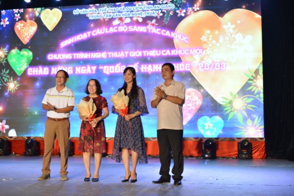Tối ngày 18/3/2021 tại Sân khấu Trung tâm Văn hóa Nghệ thuật tỉnh An Giang, Trung tâm Văn hóa Nghệ thuật tỉnh An Giang, Câu lạc bộ sáng tác ca khúc kết hợp cùng Chi hội Nhạc sĩ Việt Nam tỉnh An Giang đã tổ chức chương trình văn nghệ giới thiệu ca khúc mới chào mừng Ngày Quốc tế hạnh phúc 20/3.