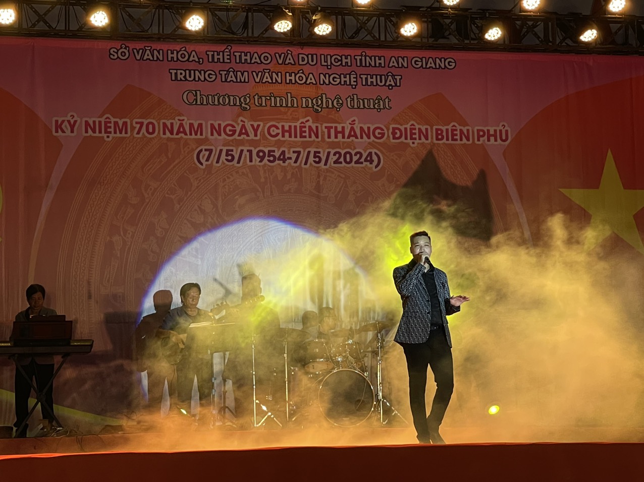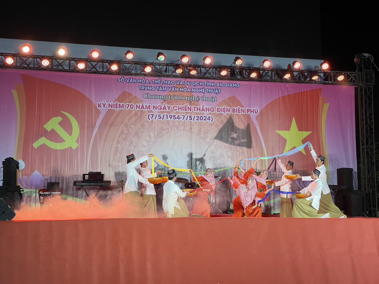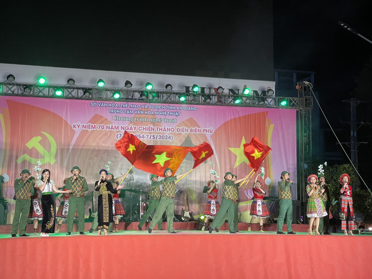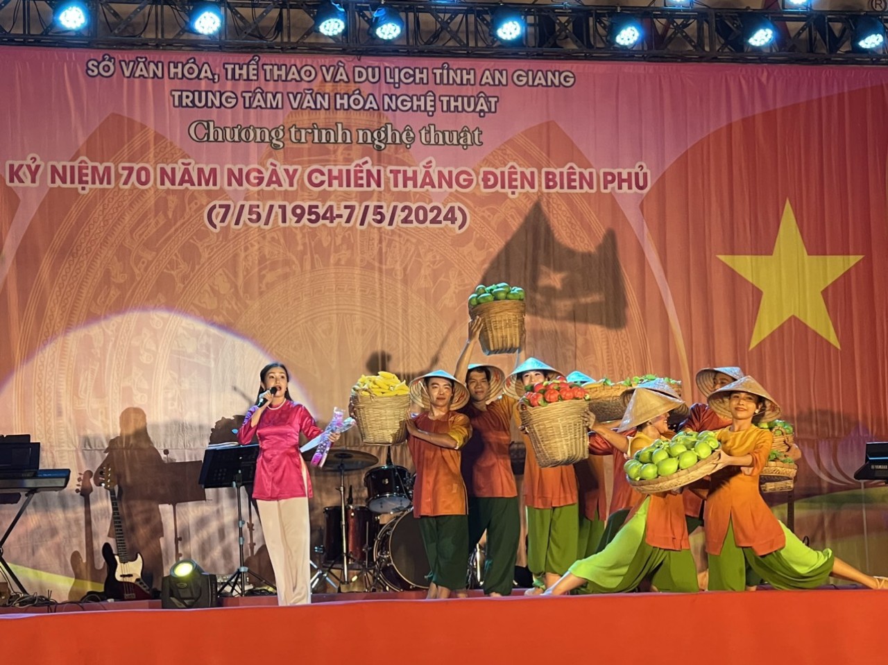 Thiết thực chào mừng kỷ niệm 70 năm chiến thắng Điện Biên Phủ (07/5/1954 – 07/5/2024), tối ngày 06/5/2024, tại công trường Trưng Nữ Vương (P. Mỹ Long, TP. Long Xuyên), Trung tâm Văn hóa Nghệ thuật tỉnh An Giang đã dàn dựng, biểu diễn chương trình nghệ thuật đặc sắc mang chủ đề “Bản hùng ca Điện Biên”.