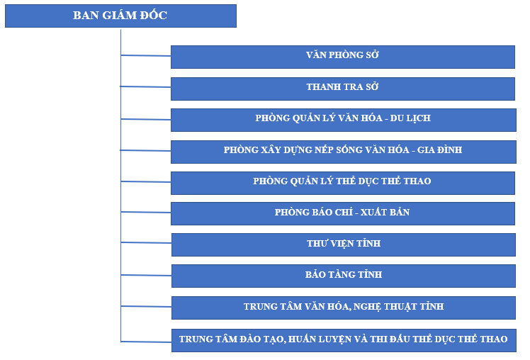 Cơ cấu tổ chức bộ máy Giới thiệu 16/08/2023 - aA + CƠ CẤU TỔ CHỨC BỘ MÁY Tin tức liên quan Ban Giám đốc Giới thiệu 22/08/2023 Giới thiệu chung Giới thiệu 16/08/2023 Trung tâm VHTTTT huyện, thị xã, thành phố Giới thiệu 26/04/2023 Phòng VHTT huyện, thị xã, thành phố Giới thiệu 26/04/2023 Các phòng, đơn vị thuộc sở Giới thiệu 26/04/2023 Chức năng, nhiệm vụ Giới thiệu 26/04/2023
