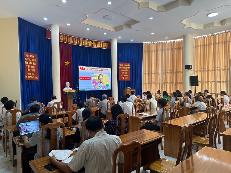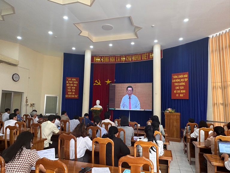 Sáng ngày 09/7/2024, Đảng ủy Sở Văn hóa, Thể thao và Du lịch phối hợp tổ chức kết nối 02 điểm cầu tham dự Hội nghị trực tuyến toàn quốc quán triệt Quy định số 144-QĐ/TW và Chỉ thị số 35-CT/TW tại Điểm cầu chính của Sở Văn hóa, Thể thao và Du lịch và điểm cầu chi nhánh tại Thư viện tỉnh.