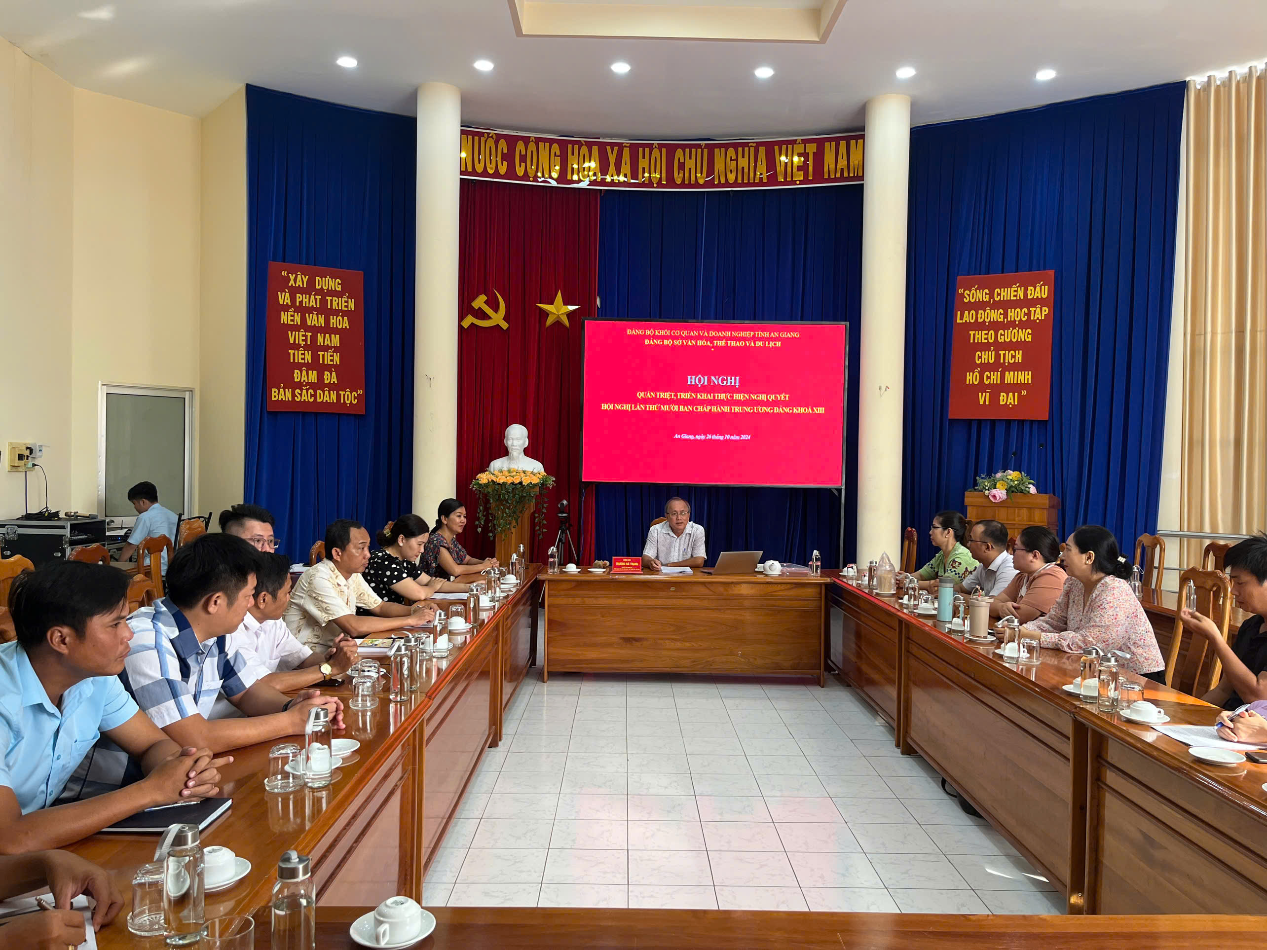 Sáng ngày 26/10/2024, Đảng ủy Sở Văn hóa, Thể thao và Du lịch tổ chức Hội nghị quán triệt, triển khai thực hiện Nghị quyết Hội nghị lần thứ mười Ban Chấp hành Trung ương Đảng khóa XIII cho 22 đảng viên chưa tham dự Hội nghị trực tuyến sáng ngày 20/10/2024.
