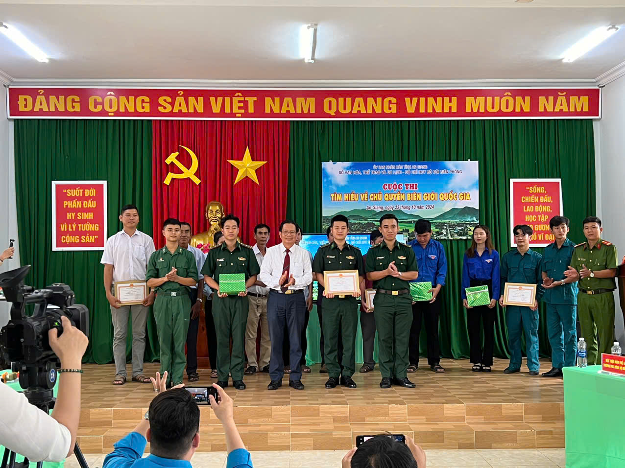 Sáng ngày 22/10/2024, tại Đồn biên phòng cửa khẩu Vĩnh Hội Đông, Sở Văn hóa, Thể thao và Du lịch chủ trì phối hợp với Bộ chỉ huy Bộ đội Biên phòng tỉnh An Giang tổ chức Cuộc thi “Tìm hiểu về chủ quyền biên giới quốc gia” tỉnh An Giang lần thứ I năm 2024. Tham dự có các đồng chí lãnh đạo, cán bộ, công chức, viên chức Sở Văn hóa, Thể thao và Du lịch tỉnh An Giang; lãnh đạo, cán bộ, chiến sĩ Bộ chỉ huy Bộ đội Biên phòng tỉnh, cùng đông đảo lực lượng chiến sĩ các Đồn biên phòng…., Ủy ban mặt trận tổ quốc Việt Nam xã Vĩnh Hội Đông, công an xã, Ban Chỉ huy quân sự xã, trường Trung học cơ sở Vĩnh Hội Đông.