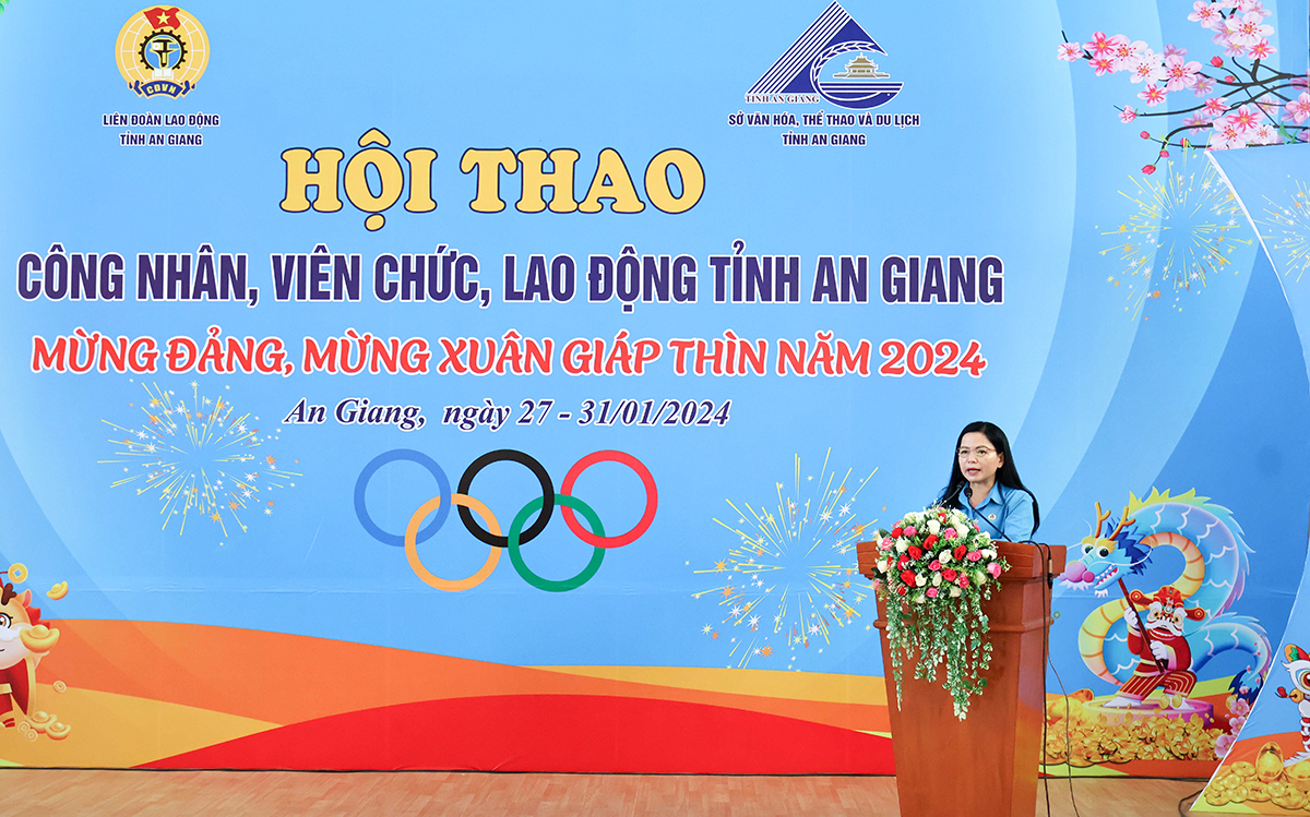 Phát biểu tại lễ khai mạc, Phó Chủ tịch Thường trực Liên đoàn Lao động tỉnh An Giang Phan Thị Diễm nhấn mạnh: “Hội thao công nhân, viên chức, lao động năm 2024 tiếp tục đánh dấu sự phát triển của phong trào thể dục- thể thao trong công nhân, viên chức và người lao động. Đồng thời, trở thành ngày hội truyền thống để công nhân, viên chức, lao động được giao lưu, học hỏi, trao đổi kinh nghiệm, tăng cường thể lực. Thông qua hội thao nhằm tạo không khí sôi nổi, vui tươi, phấn khởi trong đoàn viên, công nhân, viên chức, lao động hăng hái thi đua lao động sản xuất, góp phần thực hiện thắng lợi các nhiệm vụ phát triển kinh tế - xã hội ngay từ đầu năm”.