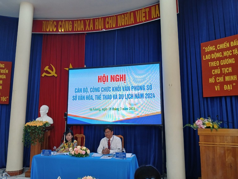 Sáng ngày 18/3/2024, Sở Văn hóa, Thể thao và Du lịch phối hợp cùng Công đoàn cơ sở đã tổ chức thành công Hội nghị cán bộ, công chức năm 2024, nhằm tổng kết, đánh giá kết quả thực hiện nhiệm vụ năm 2023; kết quả thực hiện Nghị quyết Hội nghị cán bộ, công chức năm 2023 và xác định phương hướng, nhiệm vụ trọng tâm năm 2024; đồng thời, phát huy quyền làm chủ, thể hiện ý chí, nguyện vọng thống nhất của tập thể và trách nhiệm của công chức, người lao động trong thực hiện nhiệm vụ, mục tiêu phát triển ngành, cơ quan, đơn vị.