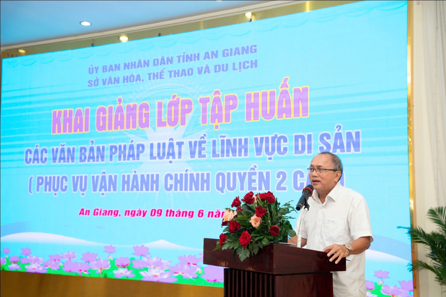 Ông Trương Bá Trạng, Phó Giám đốc Sở Văn hóa, Thể thao và Du lịch phát biểu Khai giảng lớp tập huấn