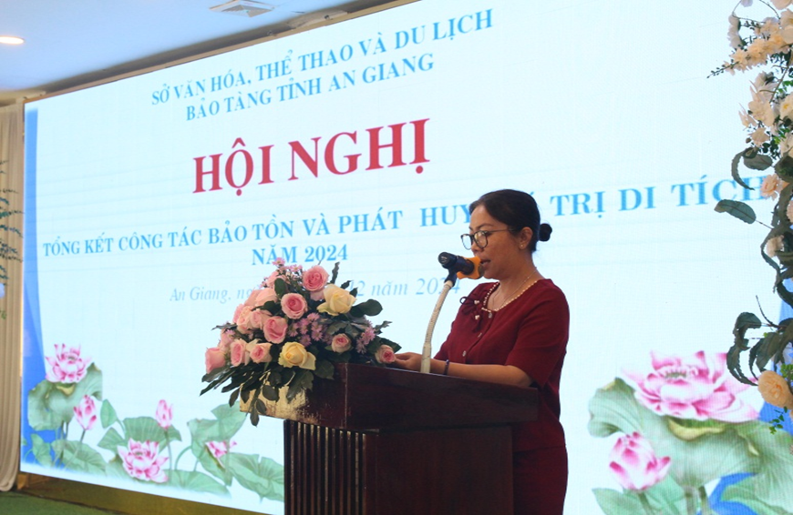 Ngày 18/12/2024, Bảo tàng tỉnh An Giang tổ chức Hội nghị Tổng kết công tác Bảo tồn và phát huy giá trị di tích năm 2024. Đến tham dự có hơn 200 đại biểu là đại diện các Ban Quản lý di tích văn hóa Óc Eo, Khu lưu niệm Chủ tịch Tôn Đức Thắng, Khu du lịch Quốc gia Núi Sam; Phòng Văn hóa và Thông tin, Trung tâm Văn hóa, Thể thao và Truyền thanh; Trung tâm Văn hóa, Thể thao và Du lịch; Cán bộ phụ trách lĩnh vực văn hóa thuộc Ủy ban Nhân dân các xã, phường thị trấn nơi có di tích được xếp hạng; đại diện Ban quản lý di tích lịch sử - văn hóa được xếp hạng trên địa bàn tỉnh An Giang.