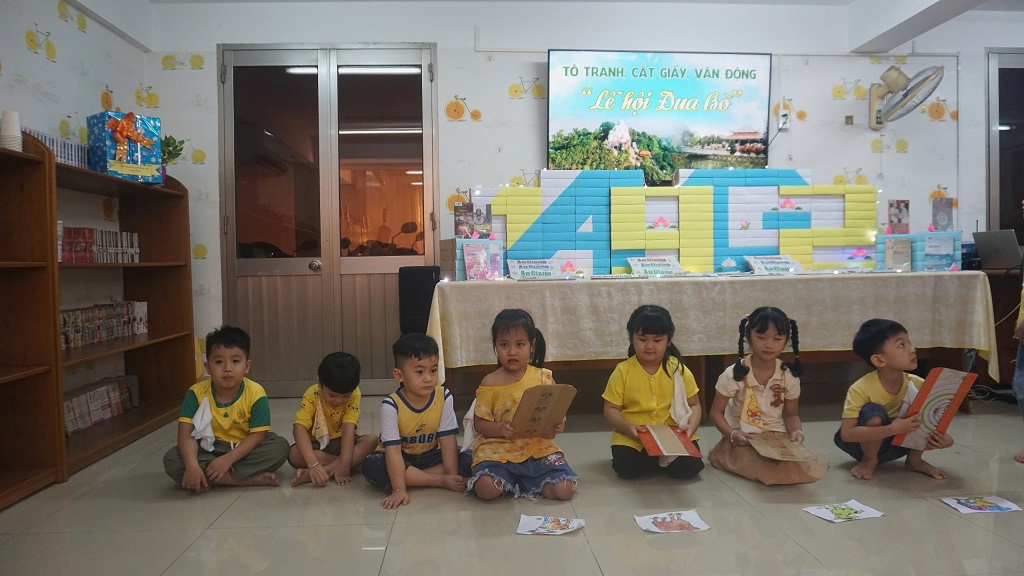 Trong không khí tưng bừng và hân hoan, các em nhỏ đã được trải nghiệm những hoạt động vừa học vừa chơi, gắn liền với văn hóa đặc trưng của miền sông nước An Giang. Sau phần giao lưu văn nghệ mang chủ đề “Hát về An Giang” với những bài ca trữ tình, sâu lắng, các em bước vào chuỗi trò chơi hấp dẫn như: “Đua thuyền trên cạn” – mô phỏng cuộc sống vùng sông nước. “Lễ hội đua bò” – tái hiện nét đặc sắc của lễ hội truyền thống. “Bịt mắt bắt vịt”“Câu cá trên xuồng” – những trò chơi vui nhộn, rèn sự khéo léo. “Chuyền chanh bằng đũa” – tăng tính đoàn kết, hợp tác. “Ứng dụng STEAM – Lễ hội thuyền” – khám phá khoa học qua mô phỏng thực tế sống động. “Cắt dán con Ong” – khơi dậy sự sáng tạo và khéo léo của đôi tay nhỏ. Đặc biết hoạt động “Nón lá miền Tây” – gợi nhớ hình ảnh bình dị nhưng đầy tự hào của người dân quê hương. Không chỉ dừng lại ở đó, các em còn được tìm hiểu thêm về “Đặc sản An Giang” với các câu chuyện văn hóa, lịch sử ý nghĩa gắn liền với vùng đất này.