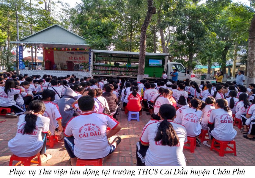 Nhằm khuyến khích phong trào đọc sách, phát triển văn hóa đọc góp phần nâng cao dân trí cho người dân vùng sâu, vùng xa, biên giới, vùng đồng bào dân tộc thiểu số. Thư viện tỉnh An Giang đã triển khai phục vụ bạn đọc ngoài thư viện thông qua xe thư viện lưu động đa phương tiện “Ánh sáng tri thức”.