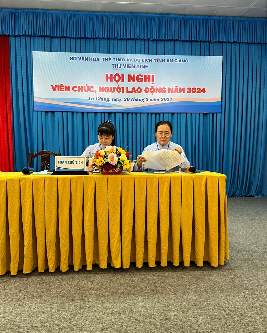 Hội nghị viên chức người lao động Thư viện tỉnh An Giang năm 2024 đã thành công tốt đẹp trong không khí đoàn kết, thống nhất của viên chức và người lao động quyết tâm thực hiện tốt phương hướng nhiệm vụ năm 2024.