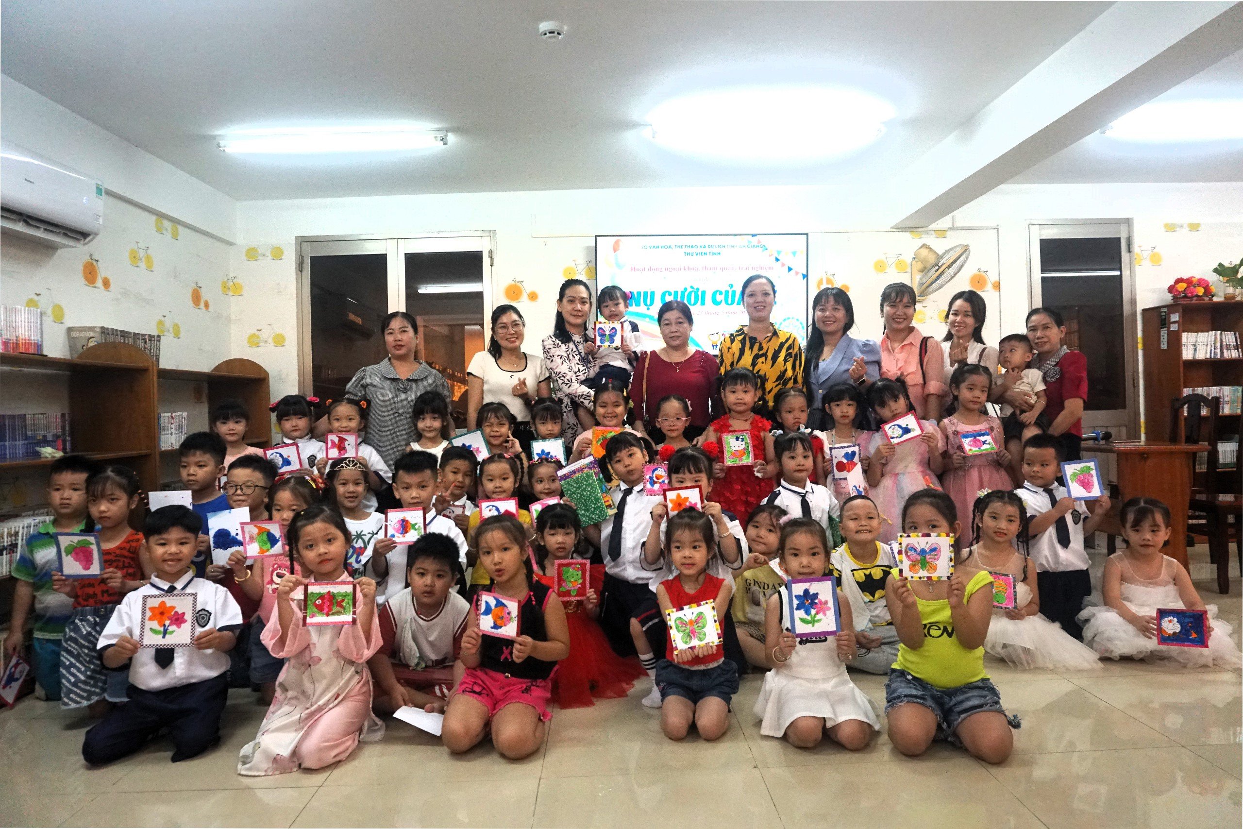 Tiếp theo đó là đoàn tham quan, trải nghiệm thu hút 130 bé ở độ tuổi mầm non, với một số các hoạt động vui chơi có nội dung “Đôi bàn tay kể chuyện”, “Tớ là ong chăm chỉ!”, “Tô màu nắng hạ”, “Vận động cùng Baby Shark”. Hoạt động đã diễn ra thu hút các bé qua cách kể chuyện bằng đôi tay. Nhóm trò chơi vận động thô với bóng và thử thách bé nhận diện, phân biệt màu sắc. Đặc biệt, nhóm trò chơi vận động tinh là những khung tranh do đôi tay khéo léo của các bạn nhỏ tự tạo nên những màu sắc vui nhộn. Sau hoạt động, các bạn được Thư viện tặng khung tranh về nhà làm kỷ niệm đầu tiên khi đến với Thư viện. Cuối buổi hoạt động các bé vận động thư giãn cùng nhịp điệu Baby Shark, với âm điệu quen thuộc và gần gũi mang đến sự kết nối và ấn tượng tốt đẹp ban đầu cho buổi sinh hoạt ngoại khóa.