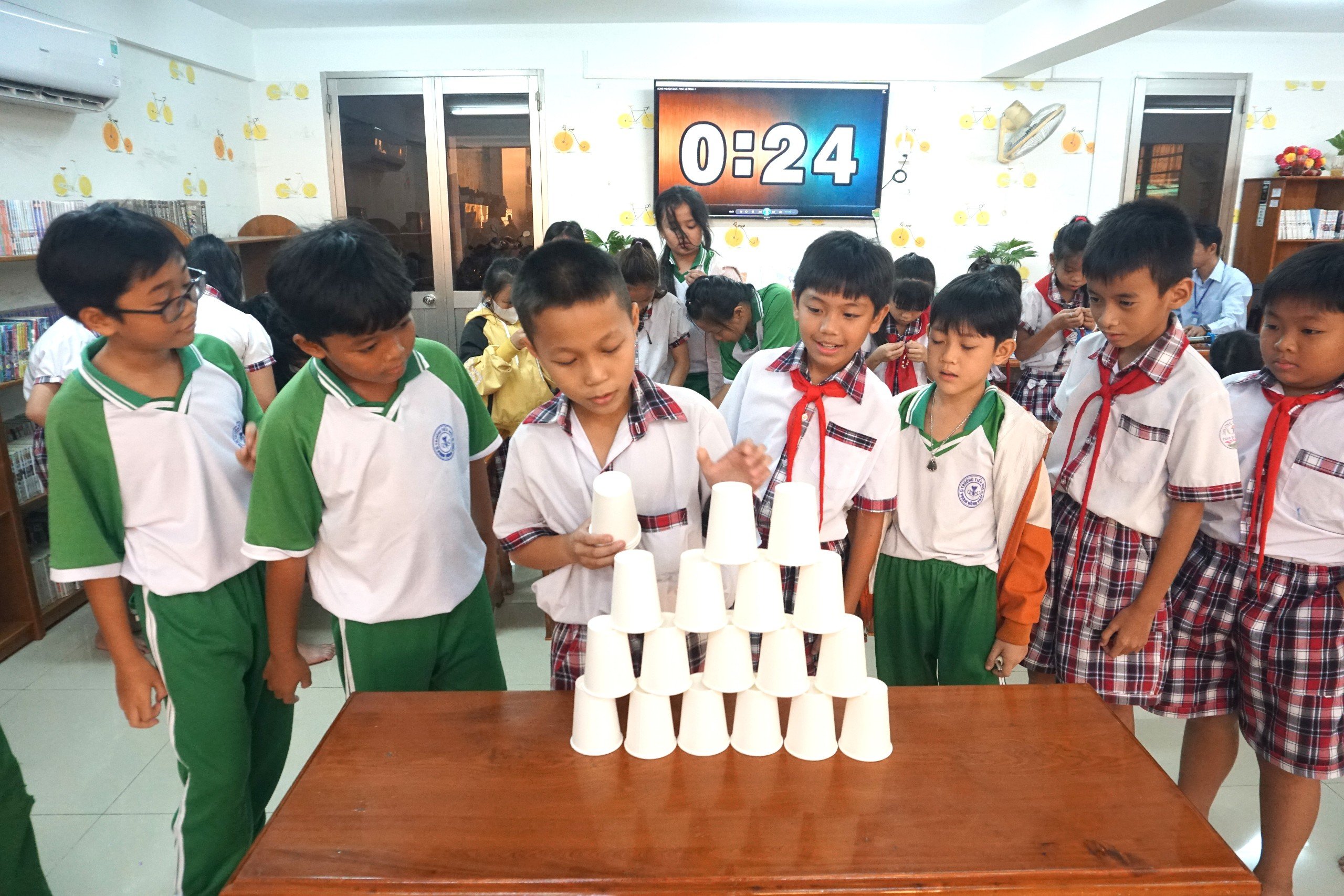 Đối với các bạn học sinh tiểu học, có sự tham gia của hơn 150 bạn cùng với các Thầy, Cô phụ trách, các buổi sinh hoạt đã diễn ra trong không khí vui tươi và ấm áp. Thông qua 03 nhóm trò chơi “Mình đi siêu thị sách”, “Vòng tay yêu thương”, “Xây tháp” và trò chơi vận động tập thể “Khát vọng tuổi trẻ”, Thư viện lồng ghép để giới thiệu các chủ đề về sách để nghiên cứu học tập, các tài liệu giải trí mới, không gian mở phục vụ hiện có tại phòng Thiếu nhi. Ngoài ra, còn giới thiệu phương thức mở thẻ đọc thiếu nhi, cách thức tra tìm tài liệu, quảng bá chuỗi hoạt động hè 2024 sắp diễn ra…