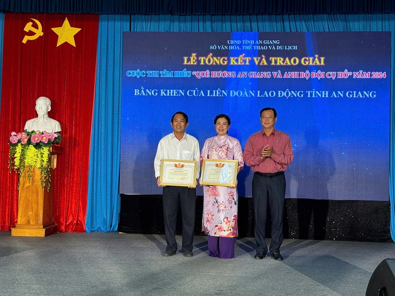 Đồng thời, nhằm khuyến khích các đơn vị có thí sinh tham gia đông đảo và bài dự thi có chất lượng cao trong những năm tiếp theo, Liên đoàn Lao động tỉnh trao tặng Bằng khen cho tập thể Trường THPT Chu Văn An (huyện Phú Tân),và giải cá nhân cho thí sinh Minh Bảo Trân là Công đoàn cơ sở, đoàn viên trực thuộc Liên đoàn lao động tỉnh.