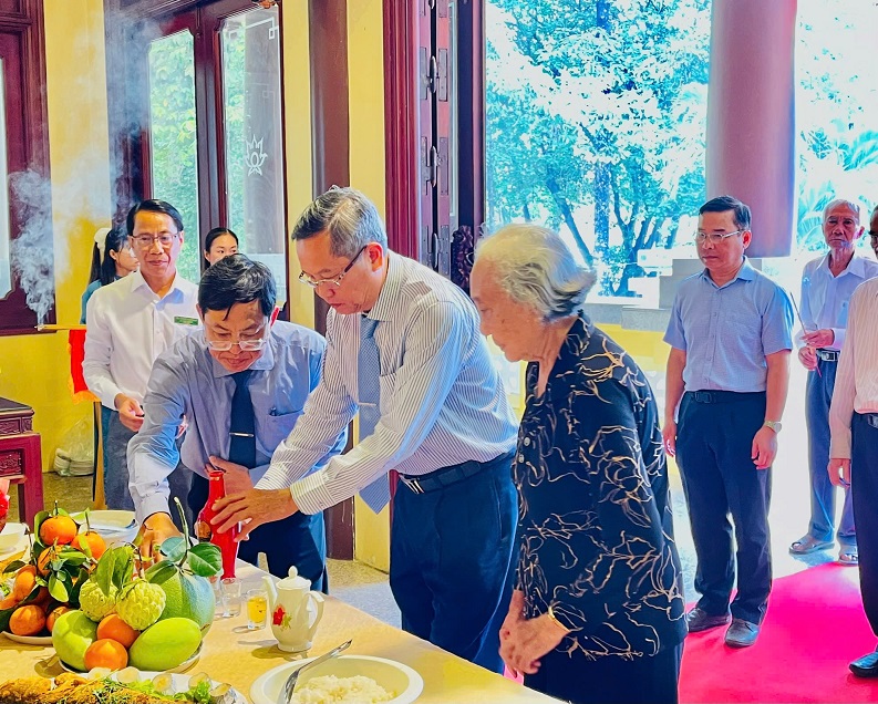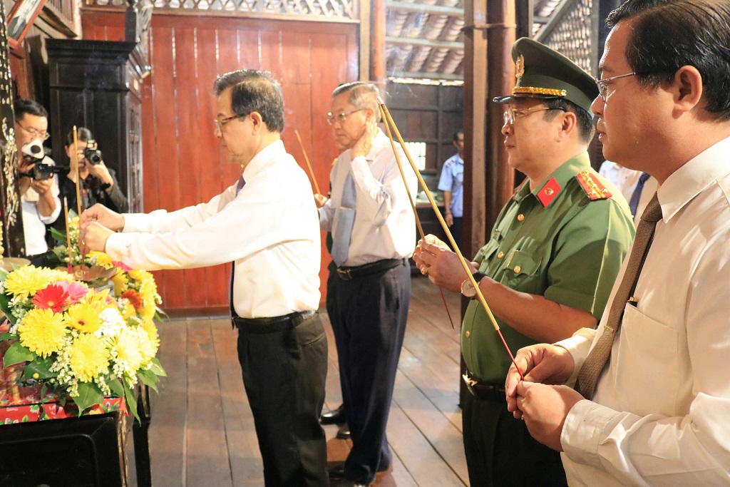 Sau lễ kỷ niệm, các đồng chí lãnh đạo tỉnh An Giang đã đến làm lễ dâng hương tại Di tích ngôi nhà lưu niệm thời niên thiếu của Chủ tịch Tôn Đức Thắng trên quê nhà xã Mỹ Hòa Hưng, thành phố Long Xuyên, tỉnh An Giang./.