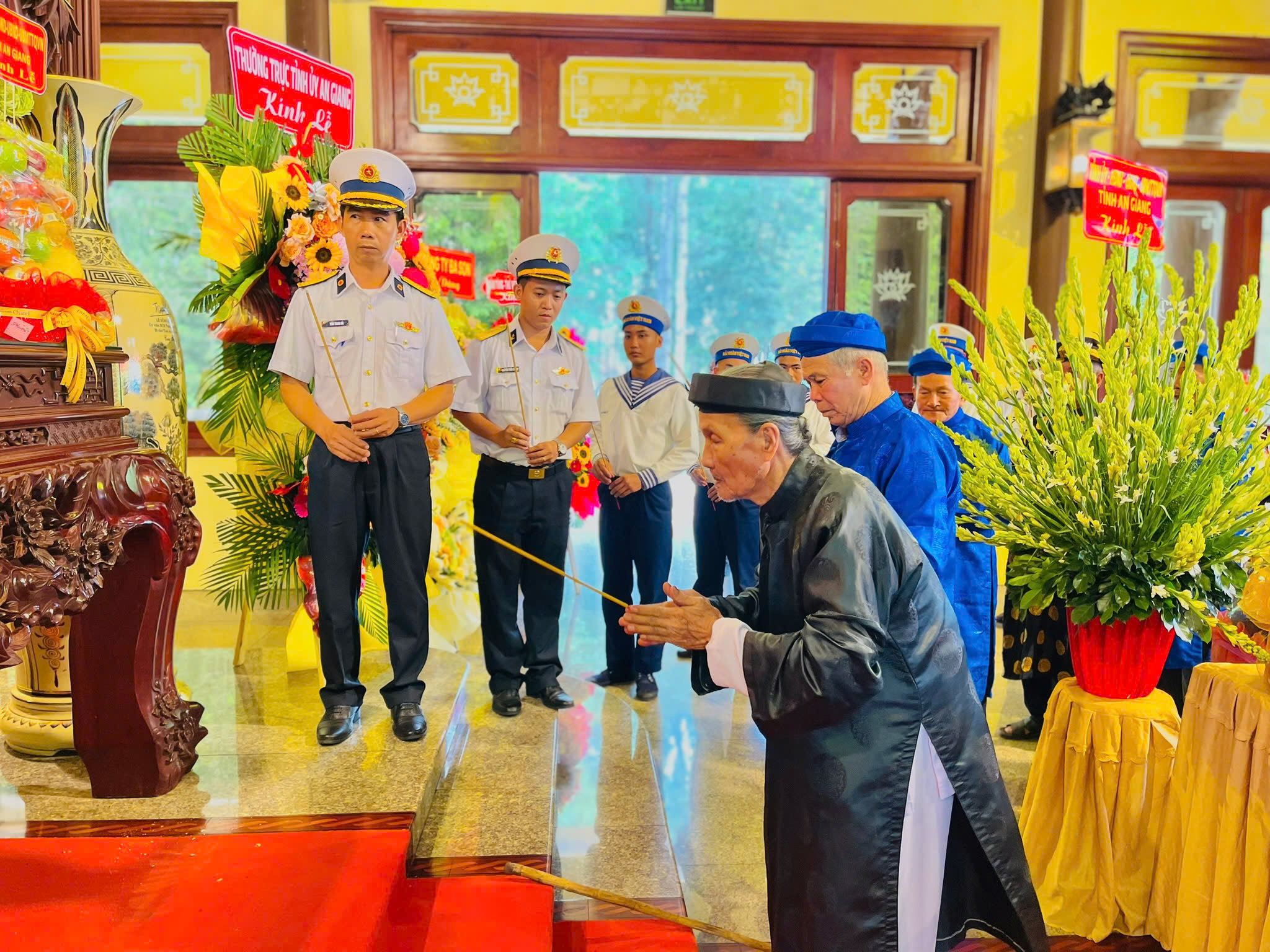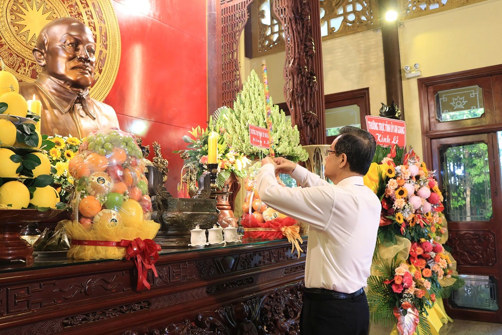 Trong không khí trang trọng của buổi lễ, tại Đền thờ Bác Tôn, đồng chí Lê Hồng Quang – Bí thư tỉnh ủy An Giang dẫn đoàn lãnh đạo Tỉnh ủy, Hội đồng nhân dân, Ủy ban nhân dân, Ủy ban mặt trận tổ quốc Việt Nam, cùng các sở, ban ngành, đoàn thể cấp tỉnh, bà con thân tộc Bác Tôn đã thành kính làm lễ dâng hương, dâng hoa, dâng lễ vật tưởng niệm Chủ tịch Tôn Đức Thắng, thay mặt cho toàn thể đồng bào, chiến sĩ và nhân dân An Giang, bày tỏ lòng tri ân và biết ơn vô hạn đến với Bác, nguyện tiếp tục phấn đấu noi theo tấm gương, đạo đức ngời sáng của Bác, một lòng đoàn kết, quyết tâm thực hiện tốt mọi nhiệm vụ, đưa quê hương An Giang ngày càng phát triển phồn vinh, nhân dân An Giang có cuộc sống ấm no, hạnh phúc.