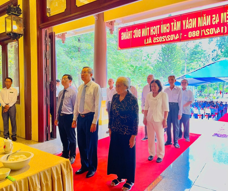 Đến dự Lễ tưởng niệm có đồng chí Lê Hồng Quang - Ủy viên Ban Chấp hành Trung ương Đảng, Bí thư Tỉnh ủy, đồng chí Phó Bí thư thường trực Tỉnh ủy – Chủ tịch HĐND tỉnh Lê Văn Nưng cùng các đồng chí Uỷ viên Ban Thường vụ Tỉnh ủy, Hội đồng nhân dân, Ủy ban nhân dân, Ủy ban mặt trận Tổ quốc Việt Nam tỉnh An Giang, các đồng chí nguyên lãnh đạo tỉnh An Giang qua các thời kỳ, đại diện lãnh đạo Sở Văn hóa, Thể thao và Du lịch các tỉnh bạn, các sở, ban ngành, đoàn thể tỉnh An Giang, các cơ quan, đơn vị Bảo tàng và Di tích ngoài tỉnh, Tổng Công ty Ba Son, Trường Đại học Tôn Đức Thắng, cùng đông đủ bà con thân tộc của Bác Tôn.