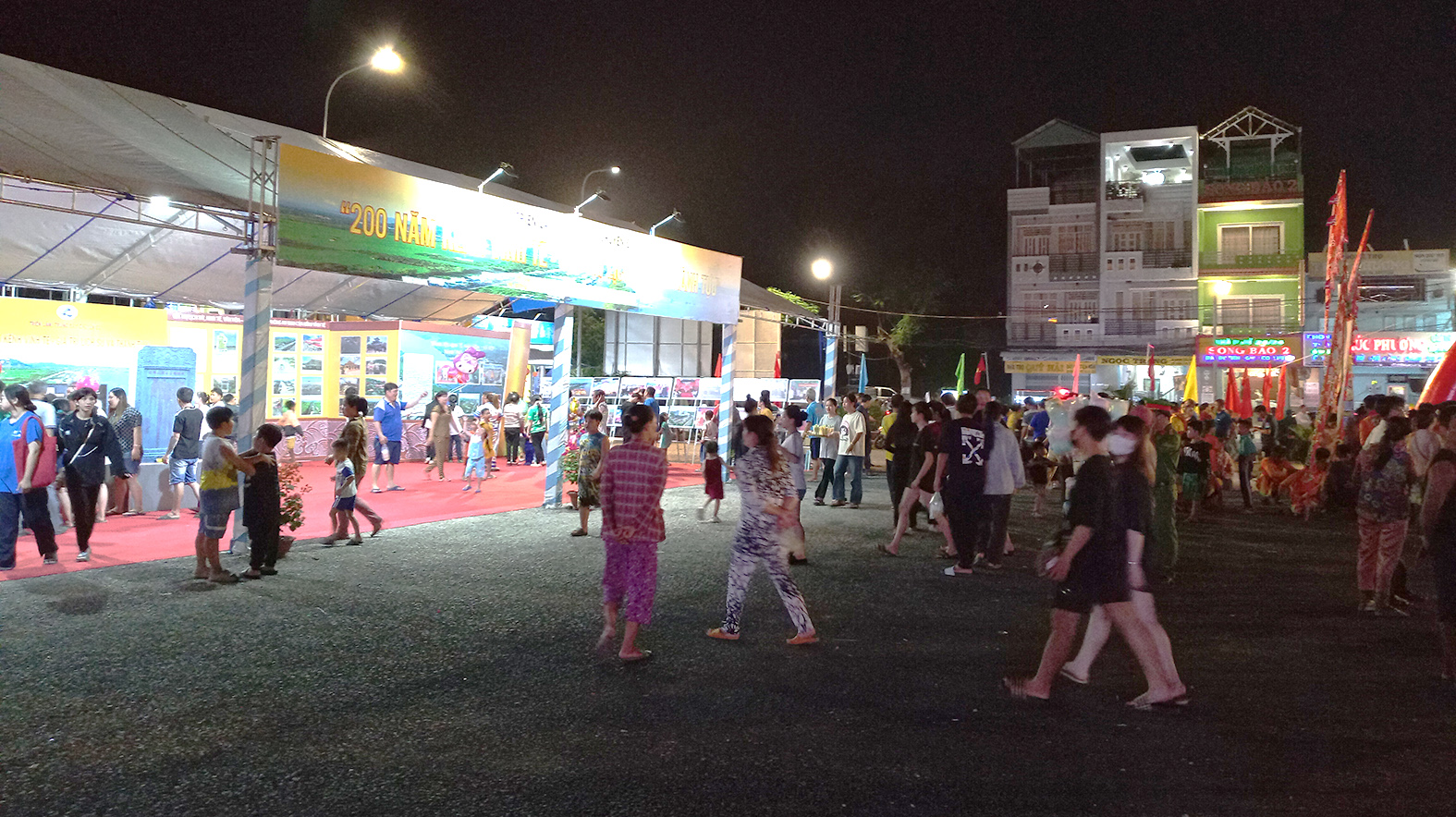 Không gian triển lãm, trưng bày tại Khu Trung tâm thương mại phường núi Sam, nơi tổ chức Lễ kỷ niệm 200 năm hoàn thành kênh Vĩnh Tế (1824 - 2024), tưởng niệm 198 năm ngày mất bà Châu Thị Tế (1826 - 2024)